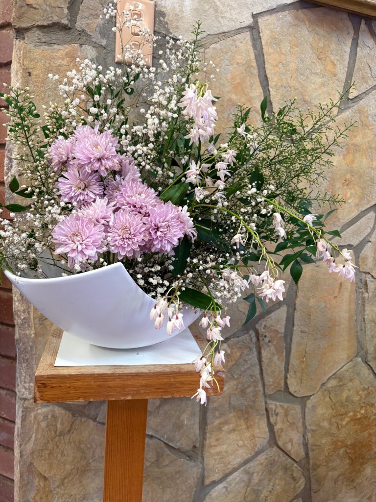 This flower arrangement including sweet smelling orchids were from Edie and Jim Barton’s garden. What a joy. Our liturgy/theme for the week was “wrestling with God”, and we thank Him…